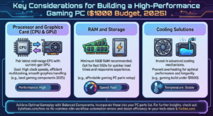 When crafting the best $1000 gaming PC build for 2025, several key factors must be considered to achieve a seamless, high fps gaming setup. The primary goal is to maximize performance while maintaining a budget-friendly approach. Whether you’re a novice or a seasoned builder, these considerations will guide you in assembling a cost-effective gaming PC.